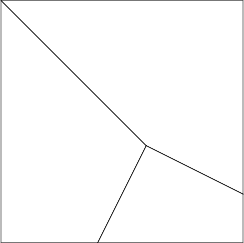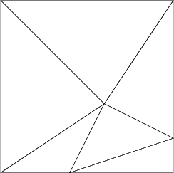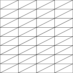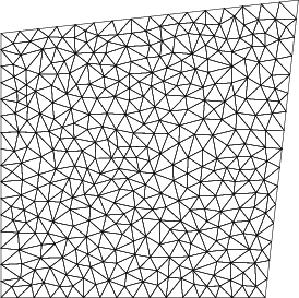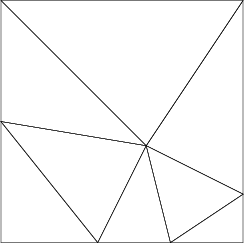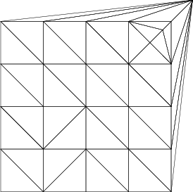 Automatic tessellation using Triangle, with vertices are defined on a Cartesian grid with two additional vertices in the top right corner and one vertex outside the unit square.