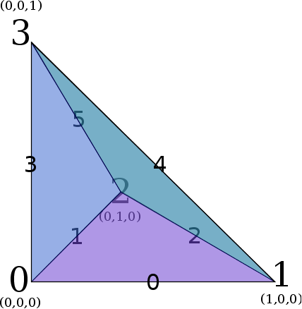 - Three-dimensional reference simplex (a.k.a. tetrahedron)