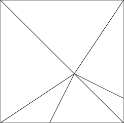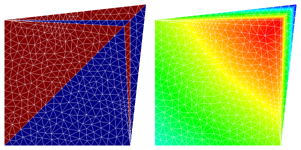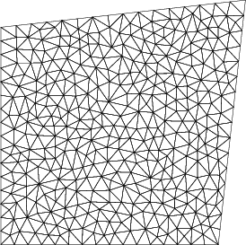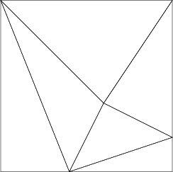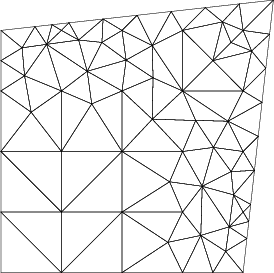 Automatic tessellation using Triangle, with vertices are defined on a Cartesian grid with two additional vertices in the top right corner and one vertex outside the unit square.